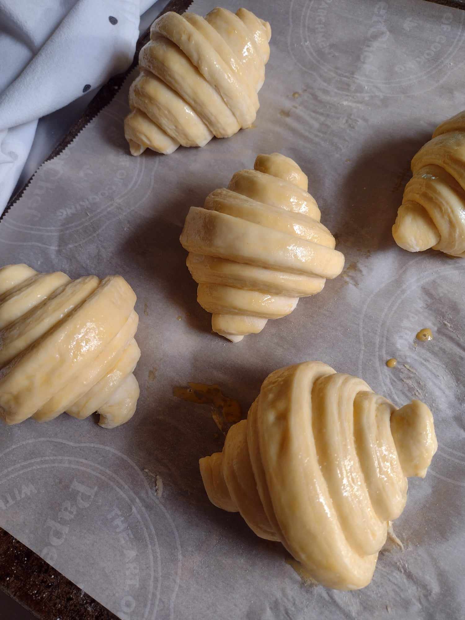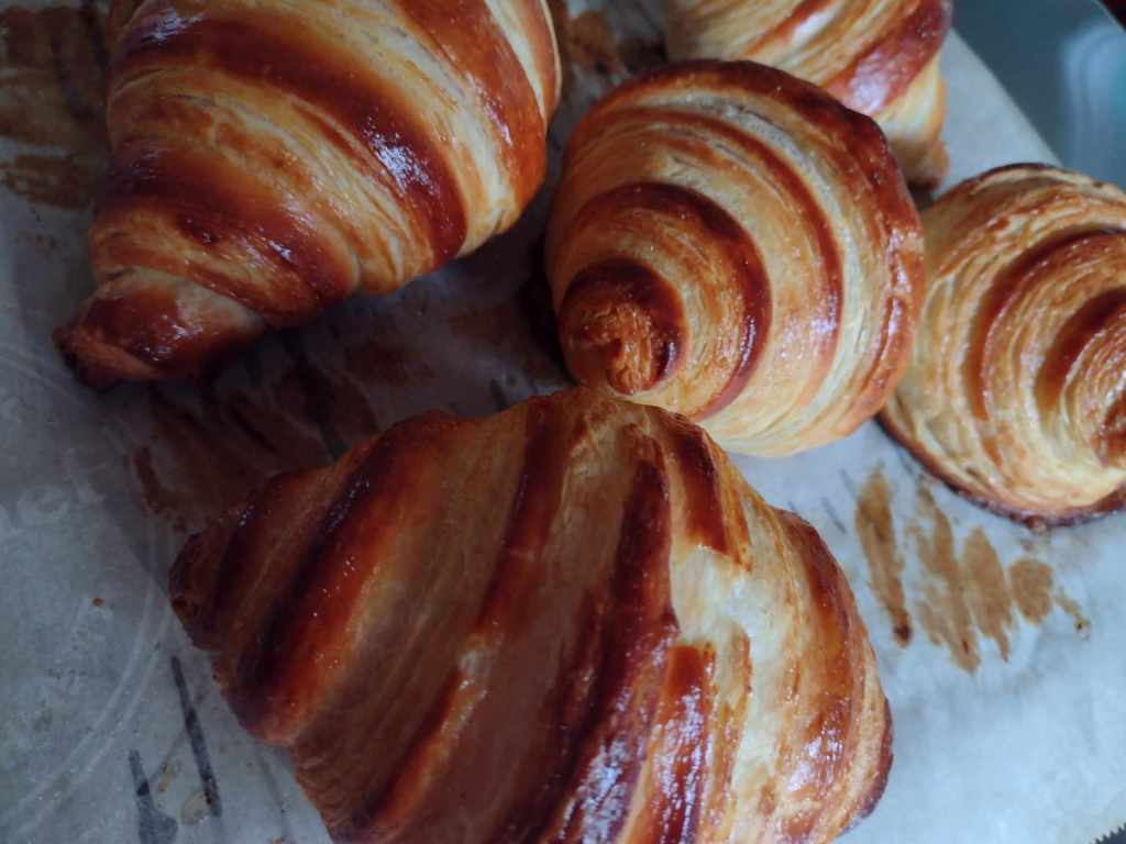 In order: Pita made with local flour; strawberry crumble (local, in-season, amazing strawberries); croissants.