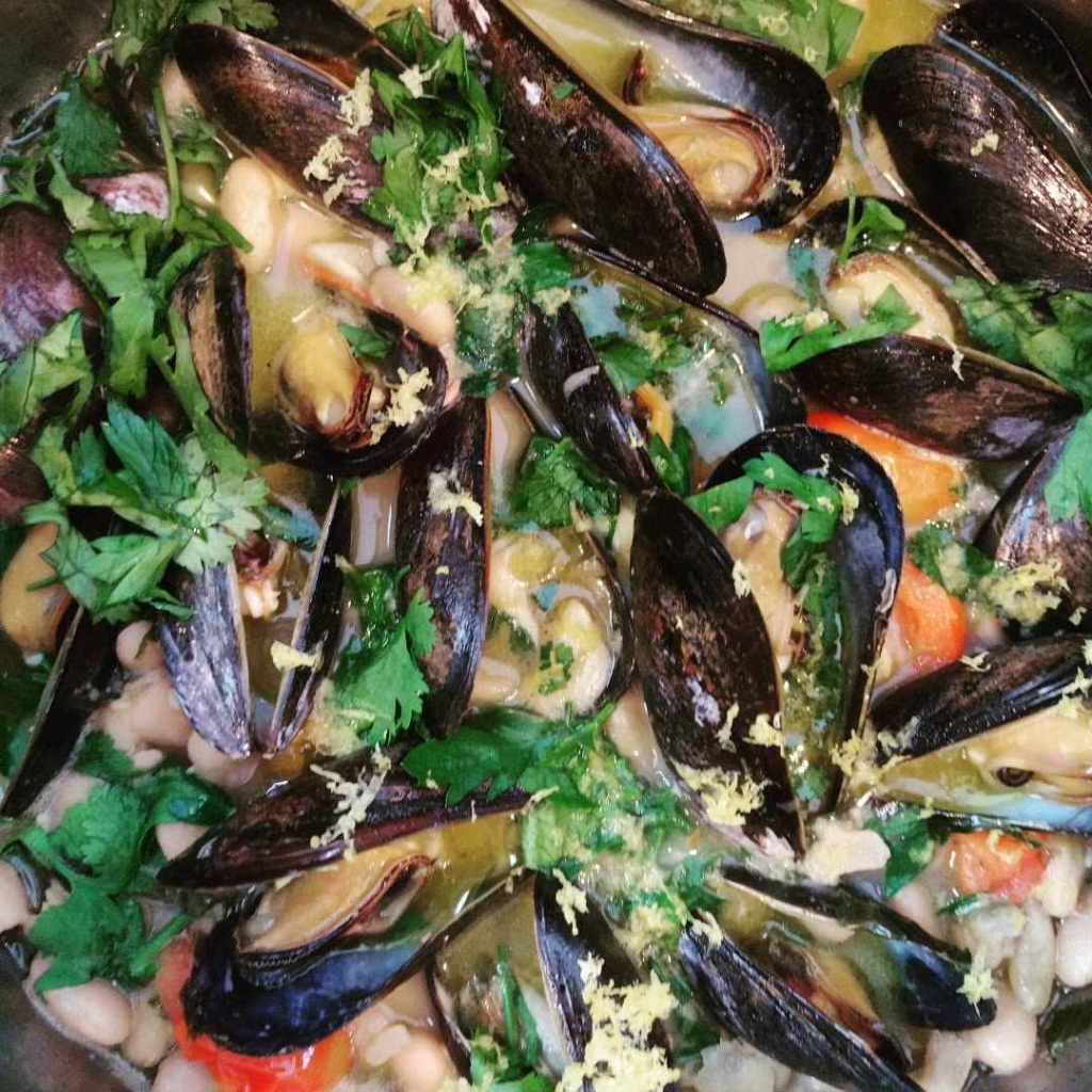 That said, I aspire to make delicious, beautiful and mostly healthy meals. Like Pennsylvania, there’s no shortage of fresh produce, family farms, farmers’ markets. Yesterday I went to an indoor, year-round market in Belfast and picked up some mussels, hakurei turnips (which I LOVE), and cooking greens.